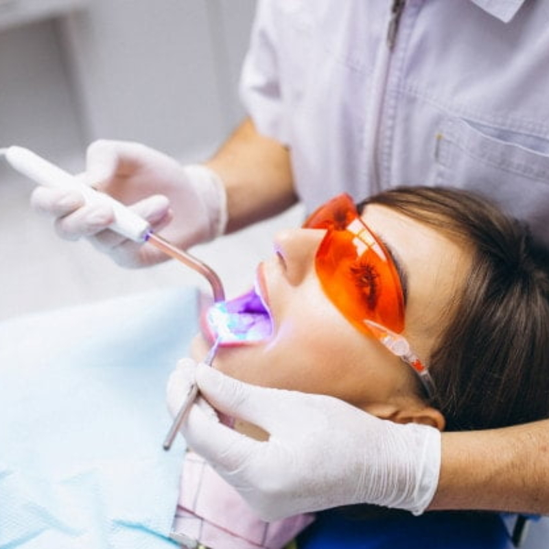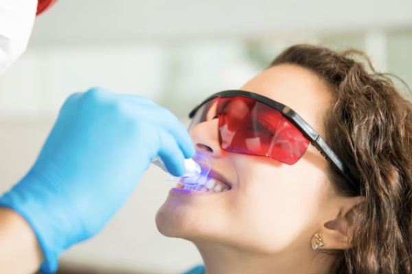 This in-clinic procedure uses a high-concentration whitening gel activated by UV light. It provides quick results and is ideal for special occasions. While safe under professional supervision, it can cause temporary tooth sensitivity and should not be done too often. For long-lasting results, it can be paired with a home whitening kit.